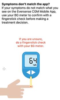 Pay close attention to your glucose values, symptoms, and trends. If your symptoms are different than the sensor glucose values or what the alert indicates, confirm your glucose value with a blood glucose meter test before making a treatment decision.*