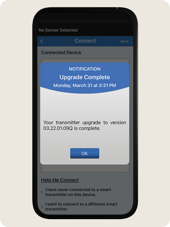 During some upgrades, you may be prompted to reconnect your transmitter.